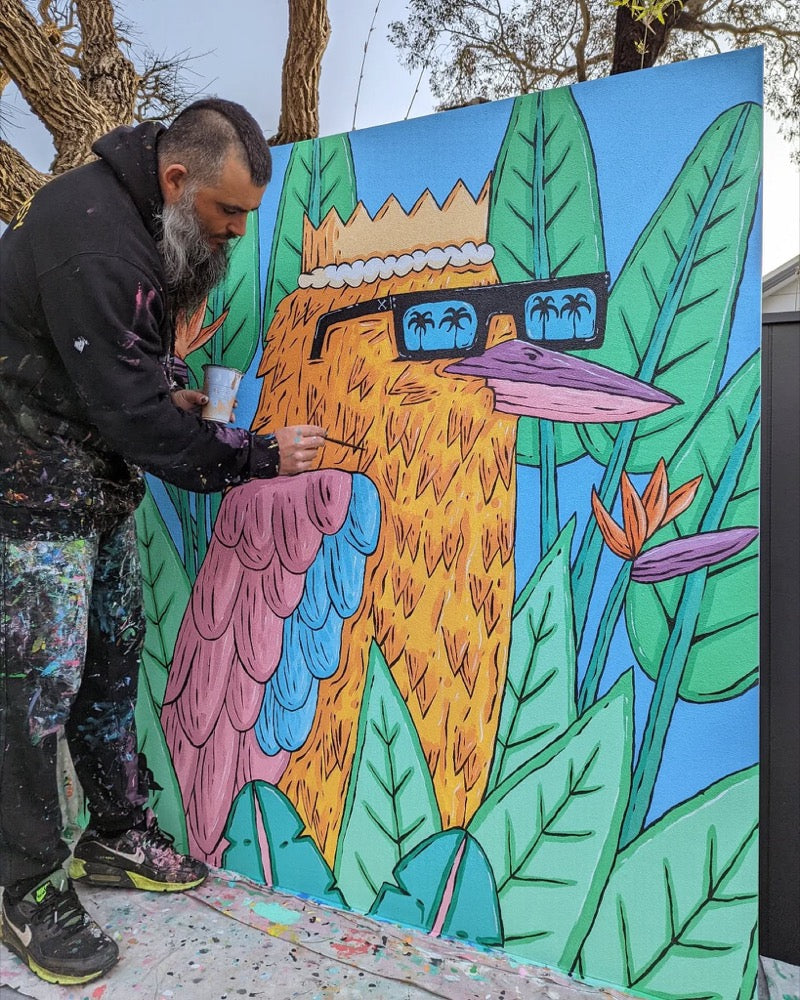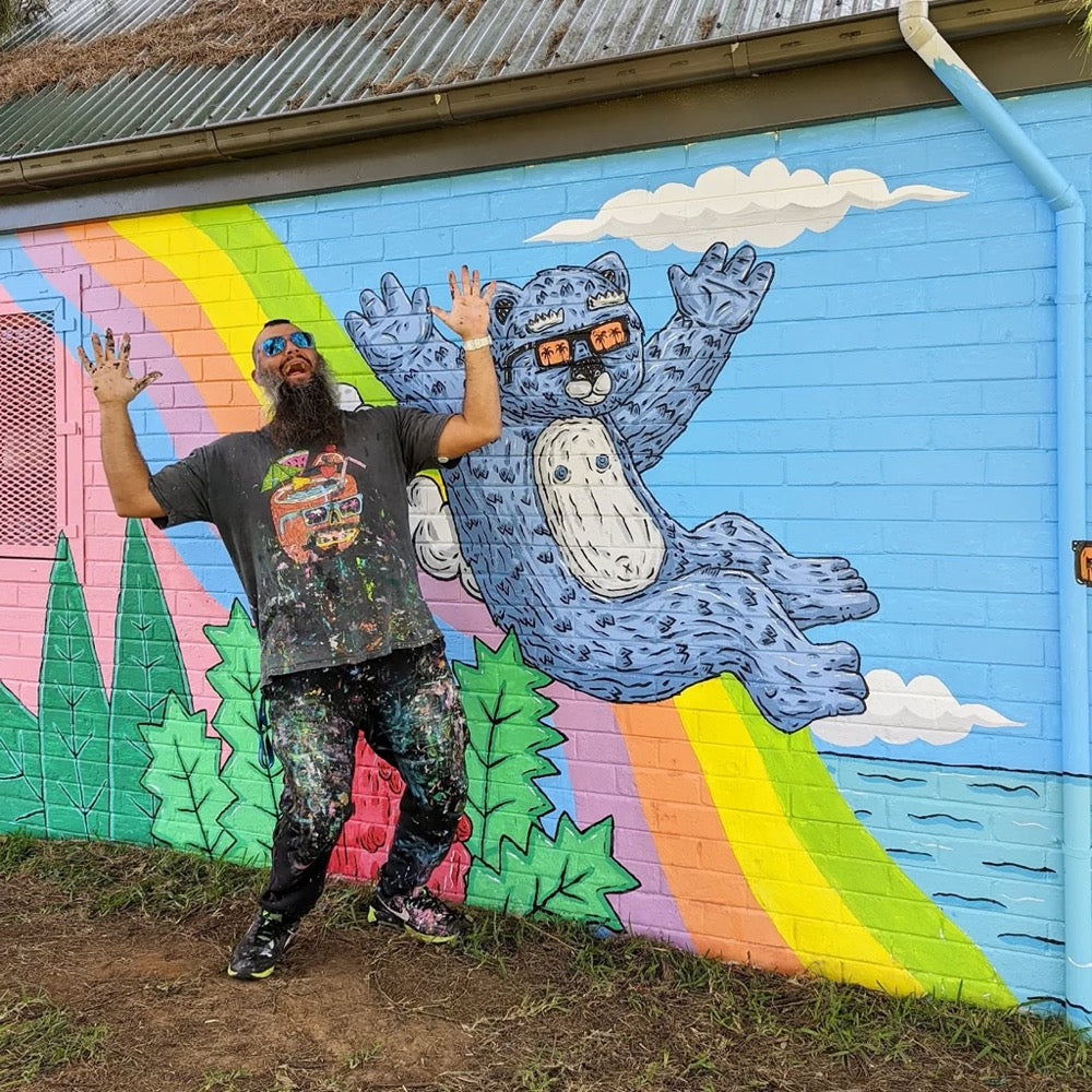 Mulga the Artist (Joel Moore) is a Sydney-based creative known for his bright, beard-filled characters and good-time vibes. His art captures the sunny spirit of Aussie life with a dose of humour and colour that’s instantly recognisable. Learn more at mulgatheartist.com.au.